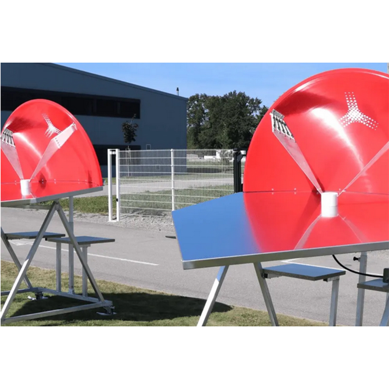 Półimpulsowa antena emitująca impulsy elektromagnetyczne o ultra-szerokim paśmie (100 MHz–6 GHz), oparta na zasadzie Half Impulse Radiating Antenna (HIRA). Jej konstrukcja oparta na zwierciadle parabolicznym z płaszczyzną odniesienia umożliwia efektywne promieniowanie impulsów elektromagnetycznych o bardzo stromym czole (~115 ps) i dużym natężeniu pola (> 40 kV/m @ 10 m przy 75 kV impulsie). Dzięki zredukowanej geometrii typu „half”, antena zachowuje kompaktowe wymiary przy zachowaniu wysokiej kierunkowości i parametrów odbicia (S11 ≤ –9.5 dB do 2.5 GHz).
